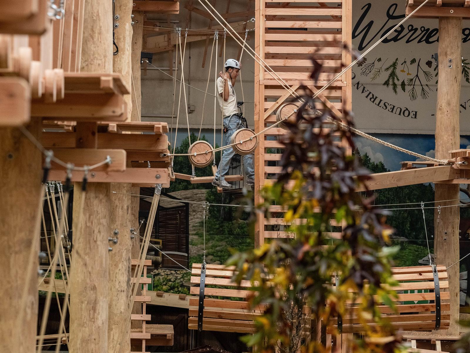 Im Dezember haben wir unseren brandneuen Indoor-Abenteuerpark eröffnet. In dieser spektakulären Indoor-Umgebung finden Sie Kletterparcours und Aktivitäten auf verschiedenen Niveaus, die sowohl für Anfänger als auch für erfahrene Abenteurer perfekt geeignet sind. Jung und Alt können sich austoben, Grenzen überschreiten und gemeinsam ein aktives Erlebnis in aller Sicherheit genießen.